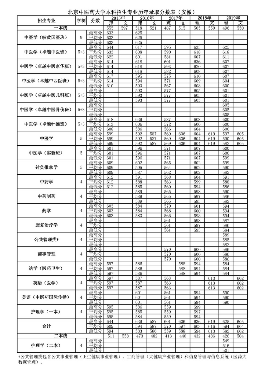 安徽历年录取分数表