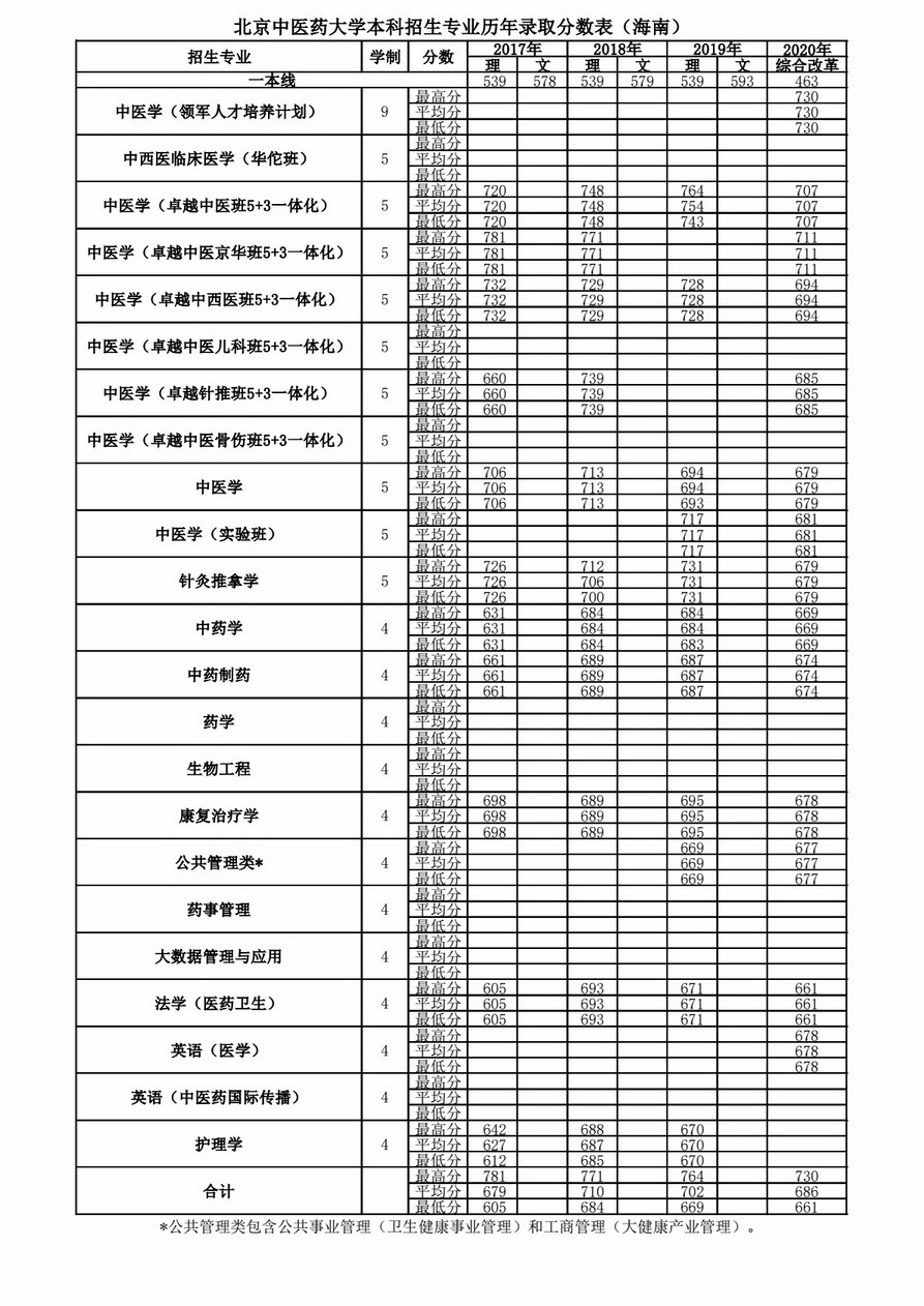 海南历年录取分数表