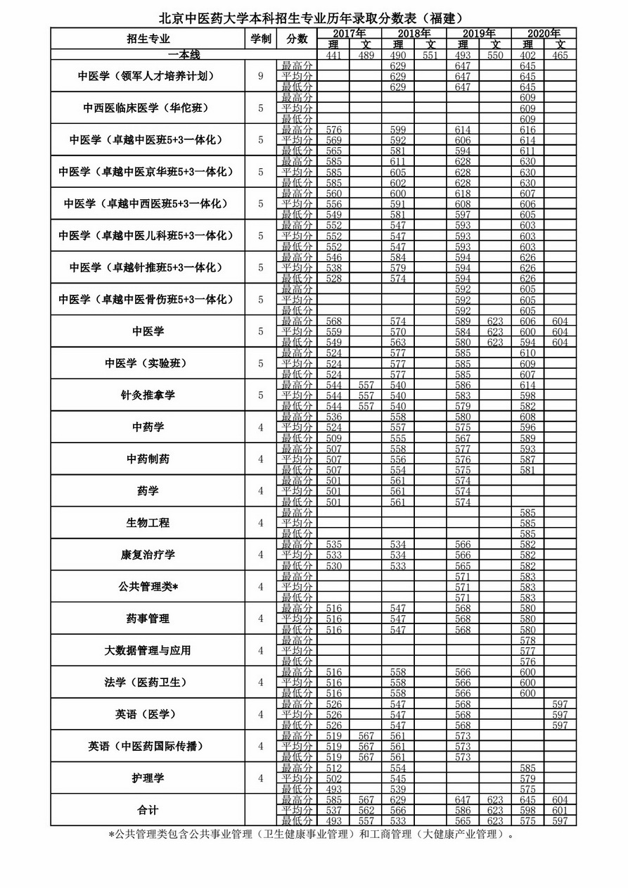福建历年录取分数表