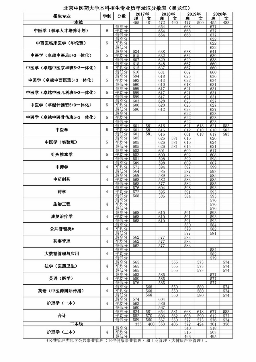 黑龙江历年录取分数表