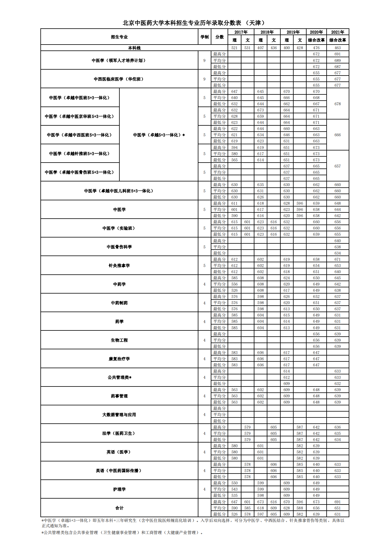 天津历年录取分数表