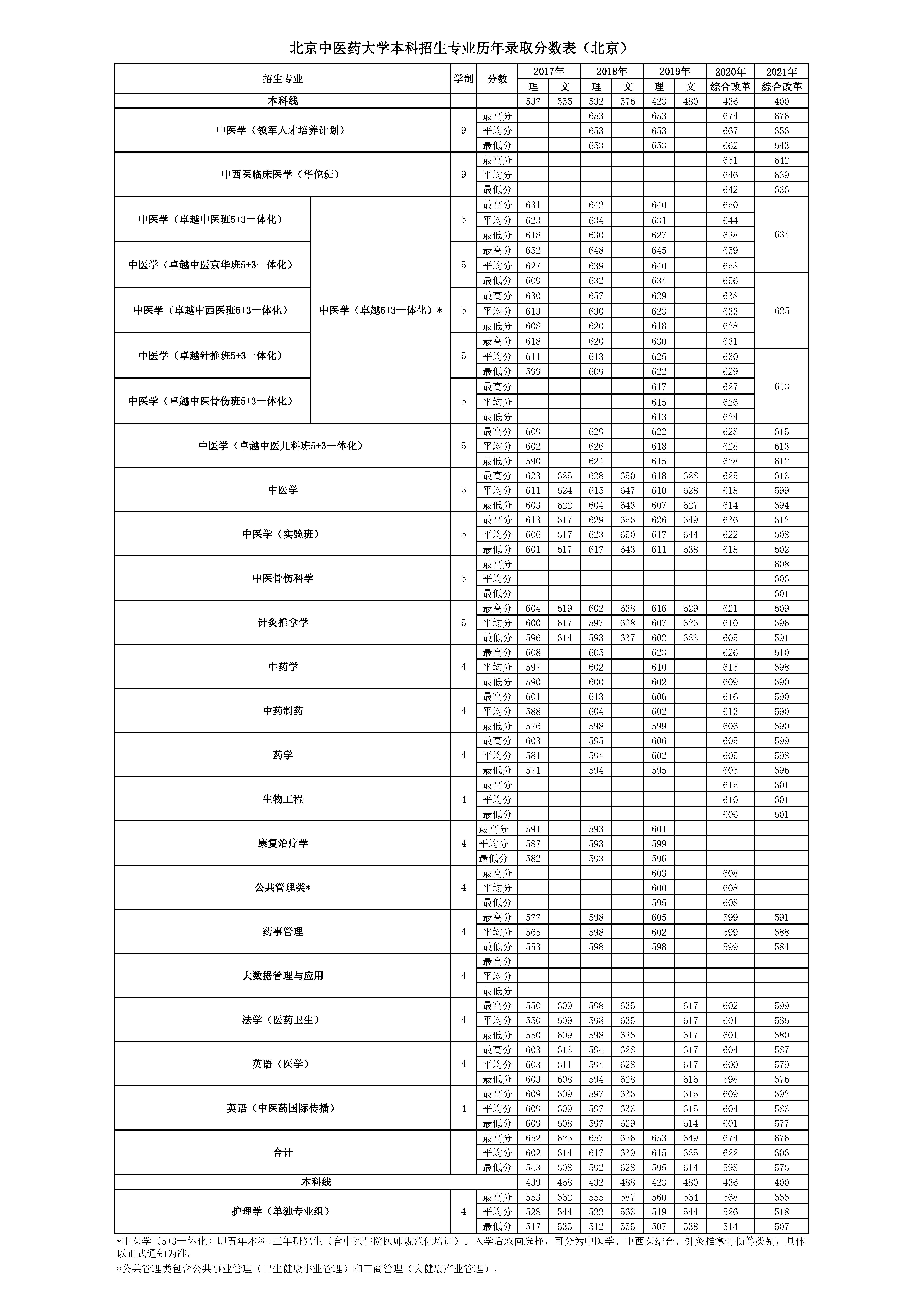 北京历年录取分数表