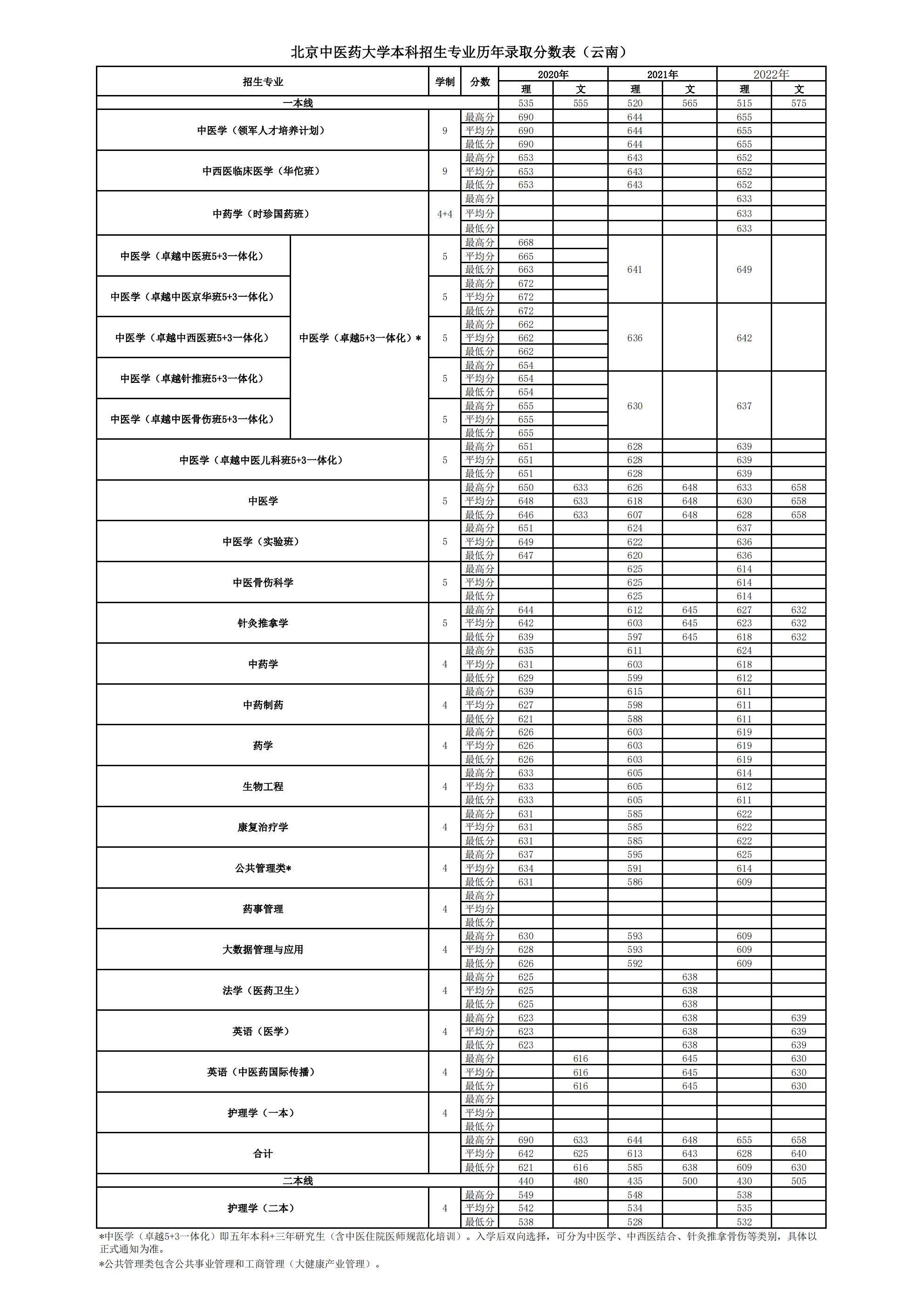 » 云南2020~2022年录取分数表