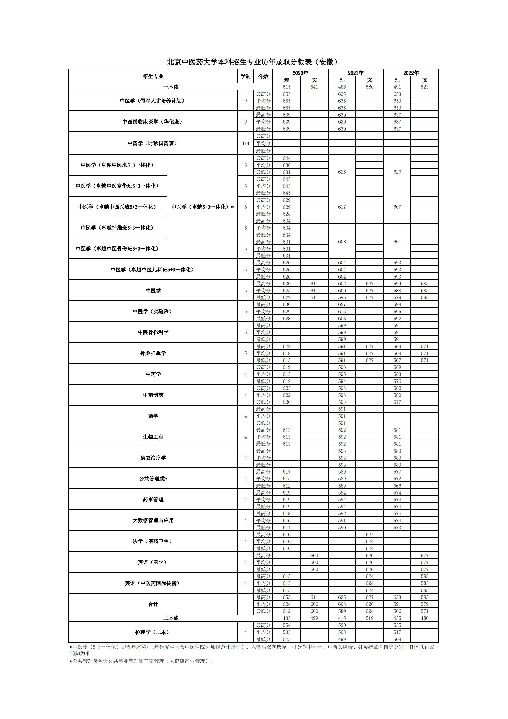 » 安徽2020~2022年录取分数表