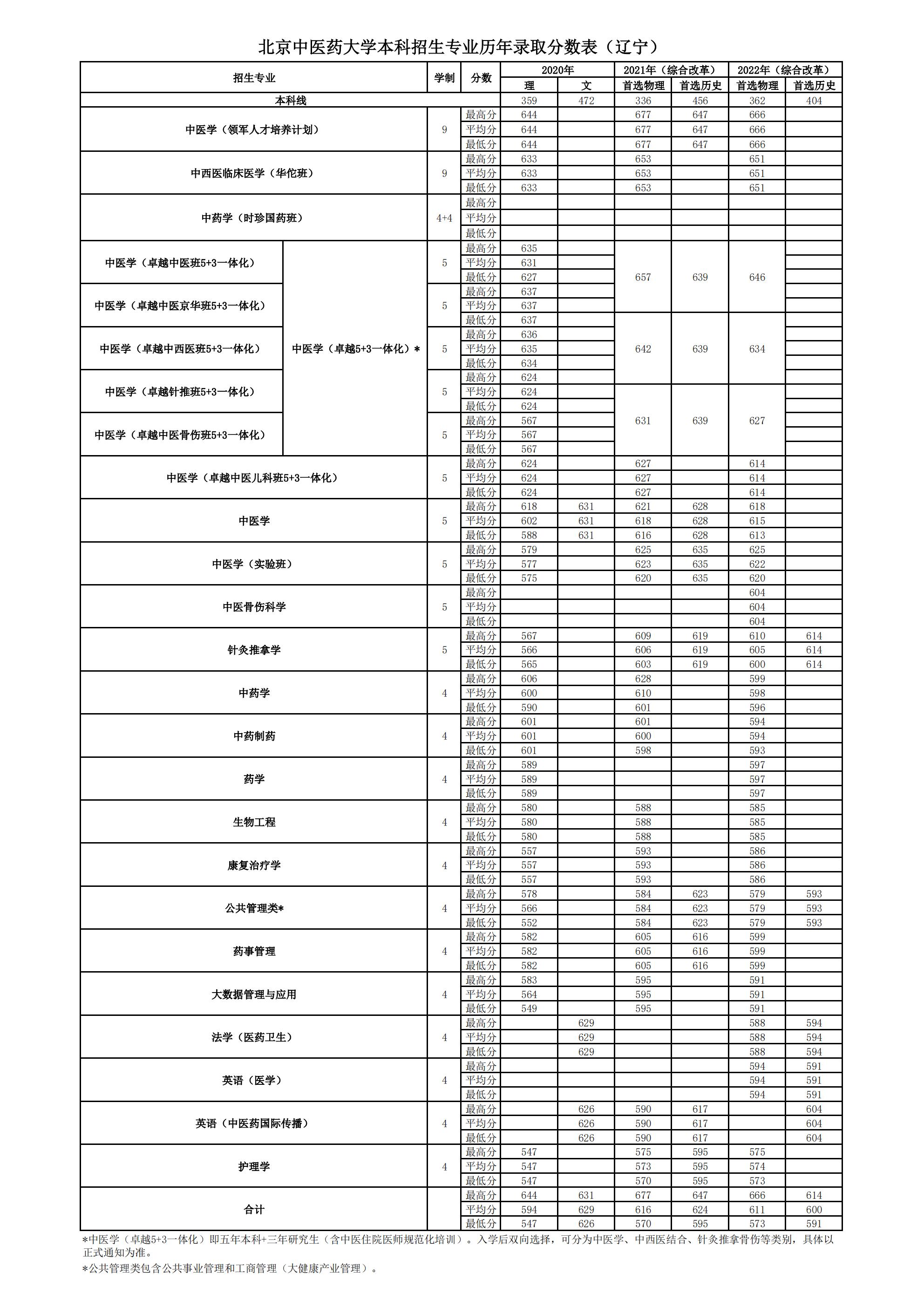 辽宁2020~2022年录取分数表