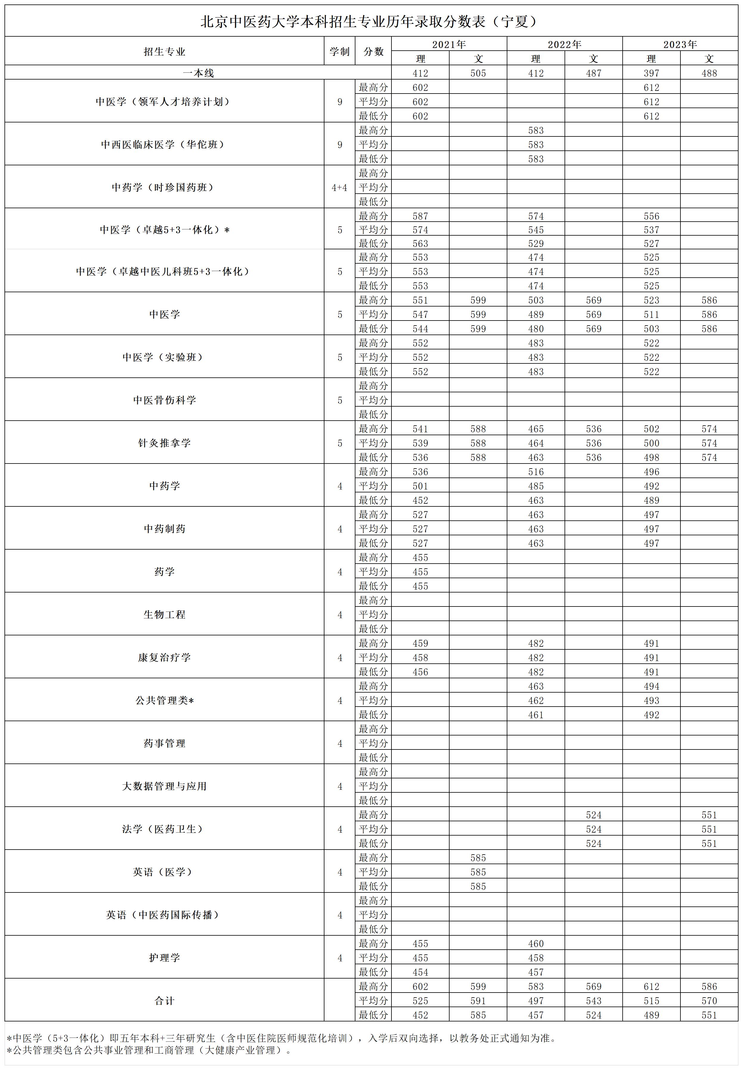 宁夏2021~2023年录取分数表