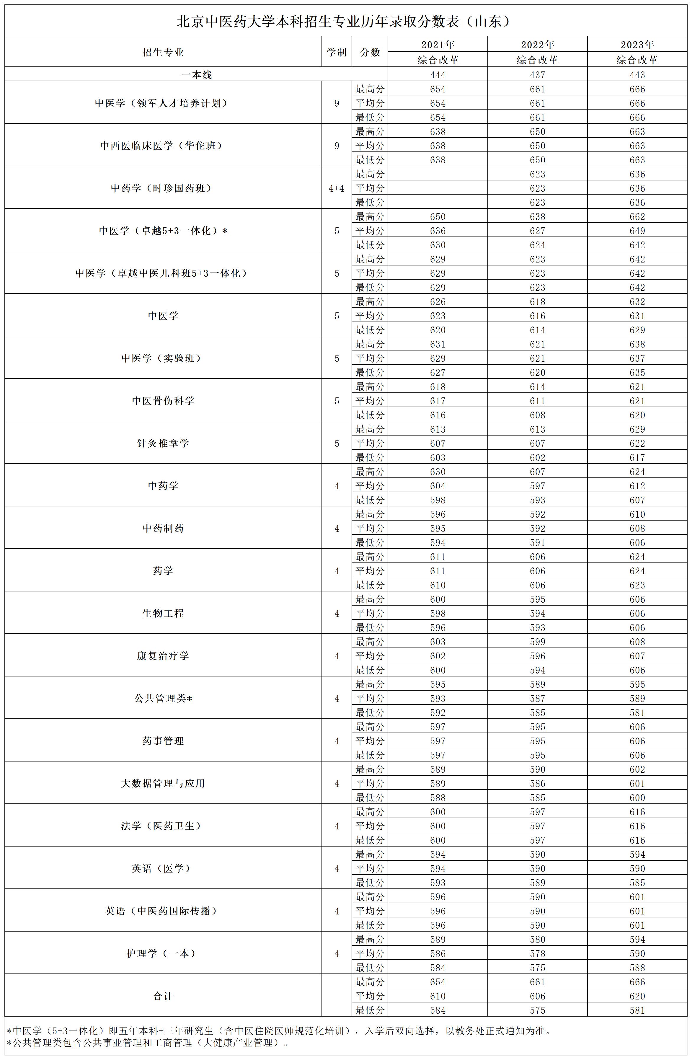 山东2021~2023年录取分数表