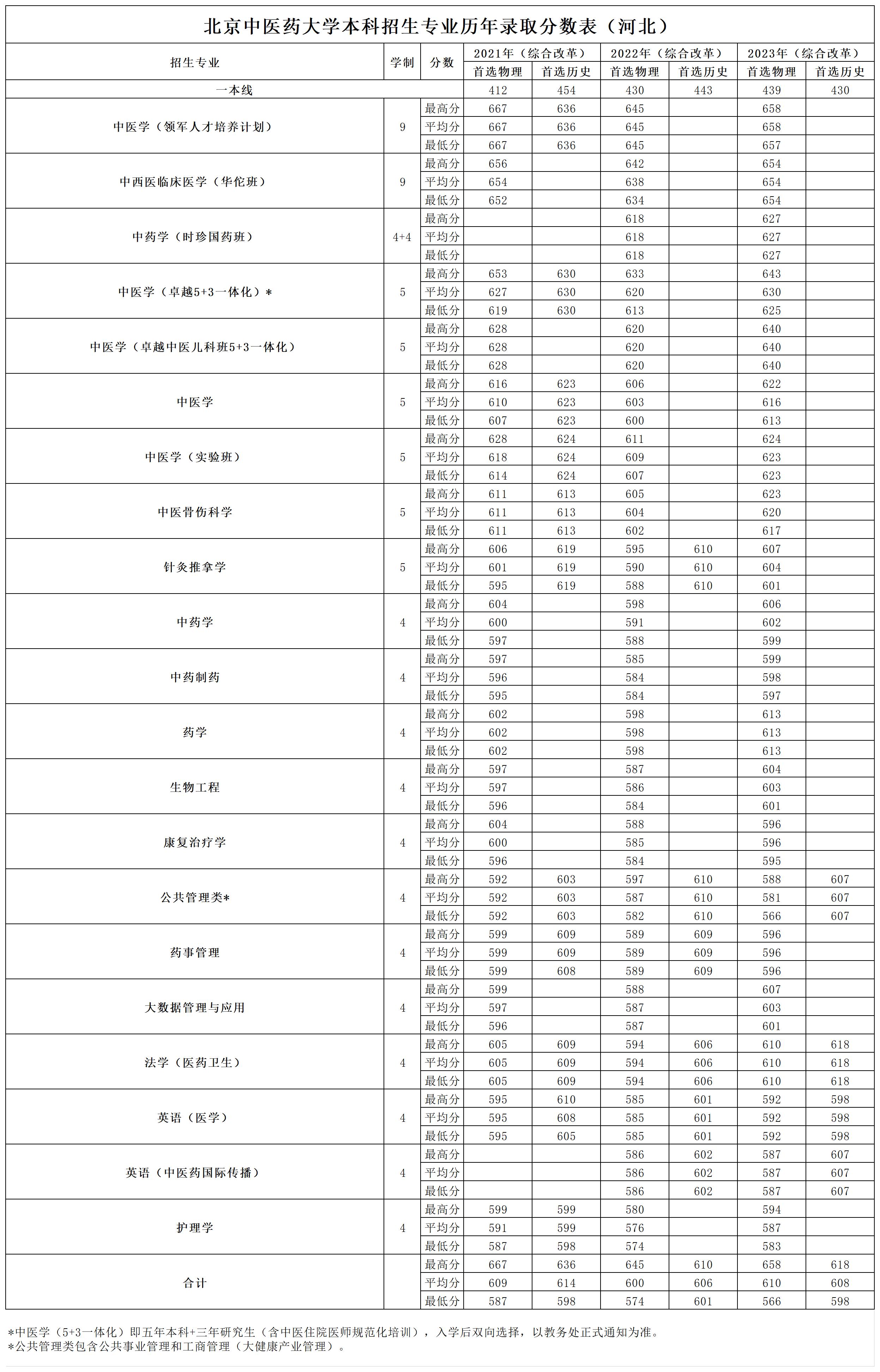 河北2021~2023年录取分数表
