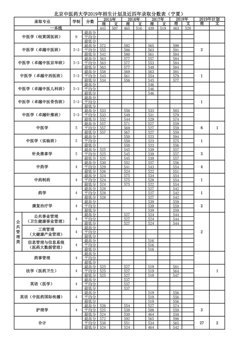 宁夏2019年招生计划及近四年录取分数