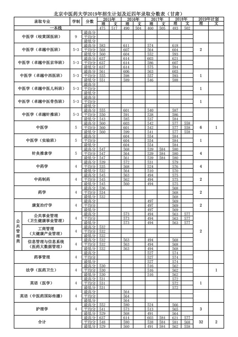 甘肃2019年招生计划及近四年录取分数