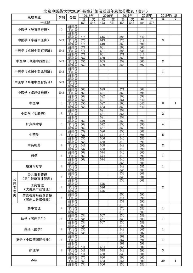贵州2019年招生计划及近四年录取分数