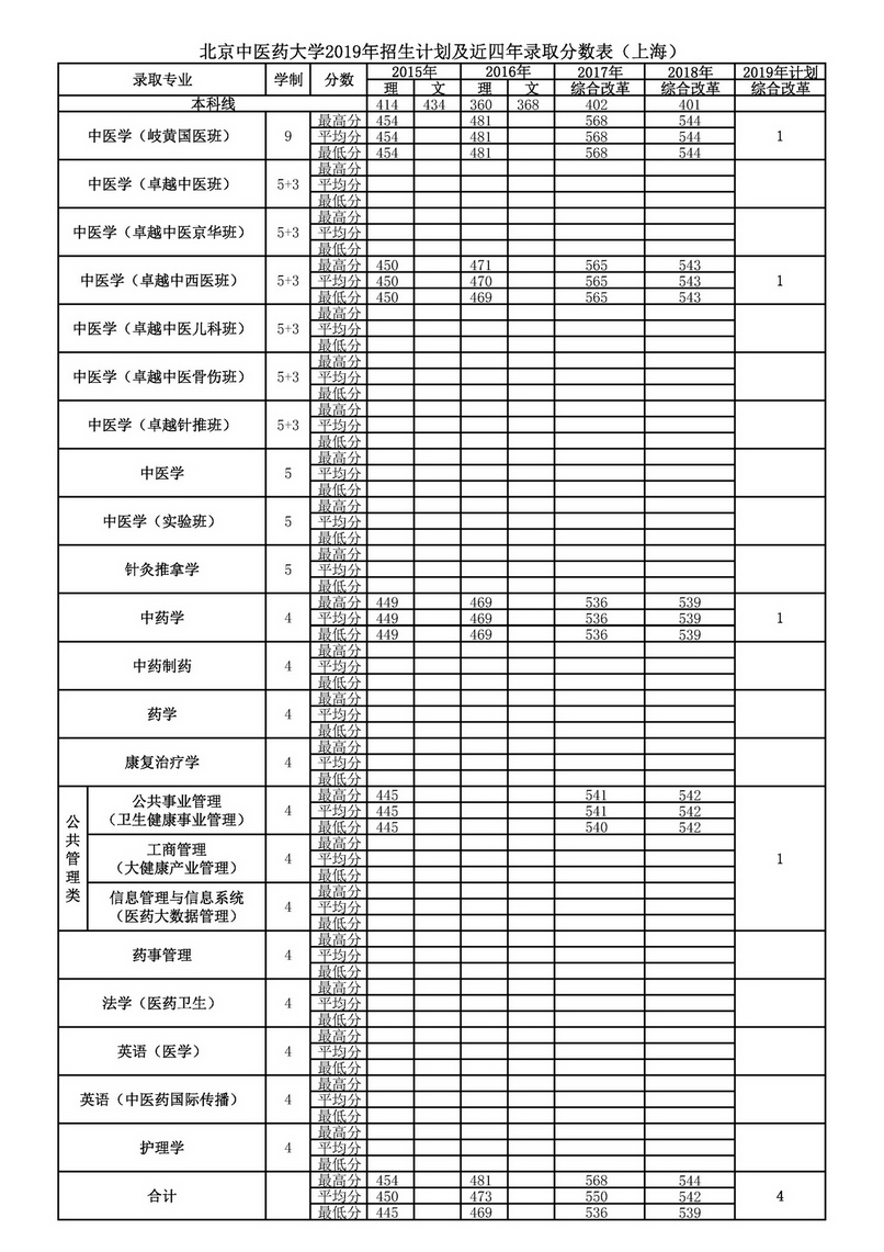 上海2019年招生计划及近四年录取分数