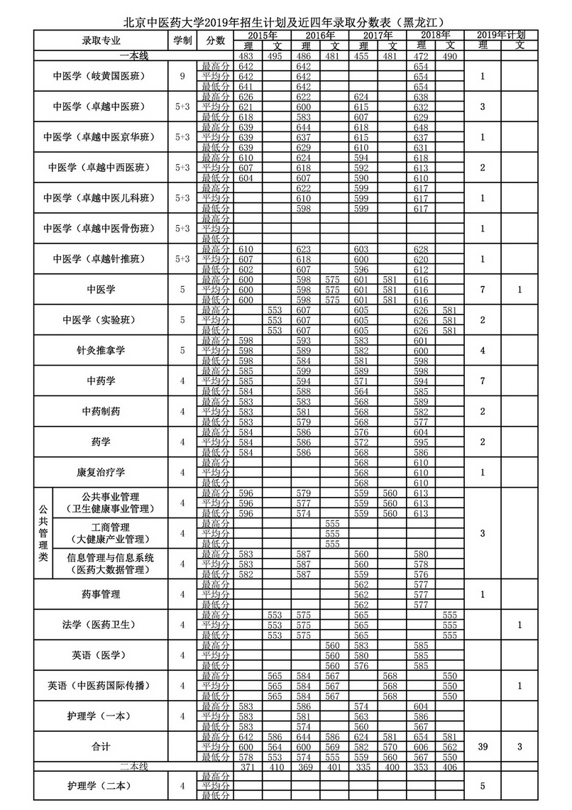 黑龙江2019年招生计划及近四年录取分数