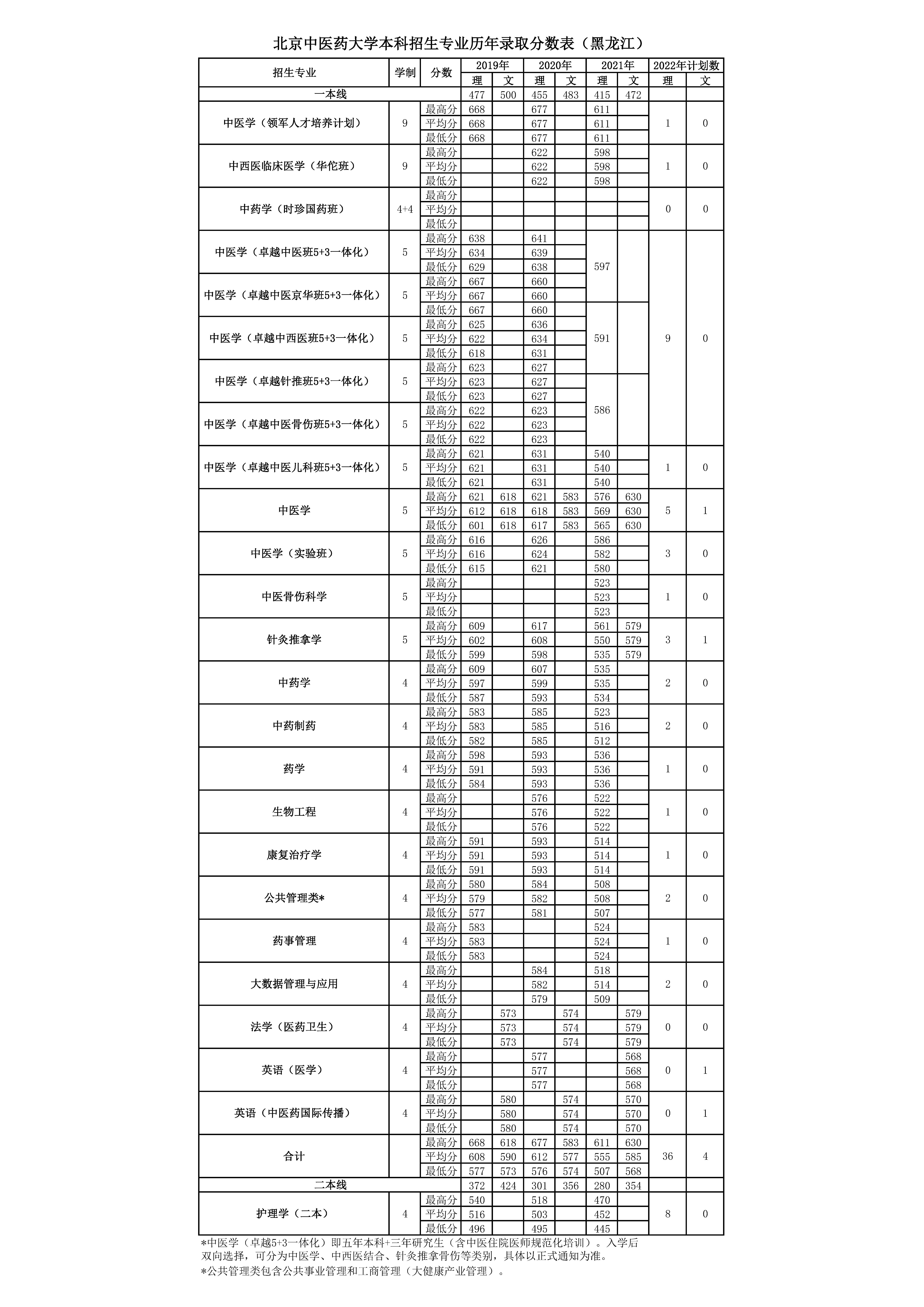 黑龙江2022年招生计划及历年录取分数