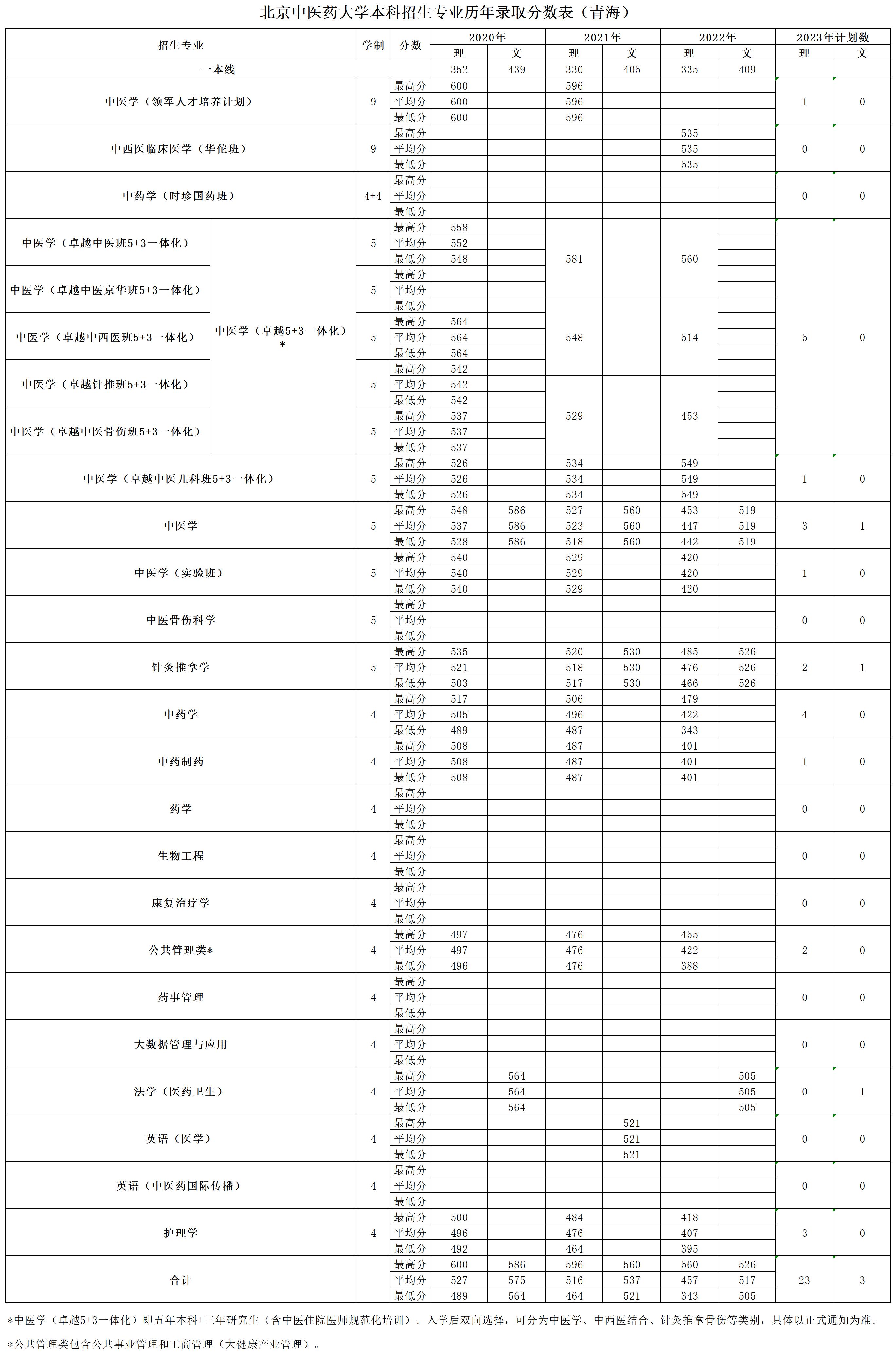 青海2023年招生计划及历年录取分数