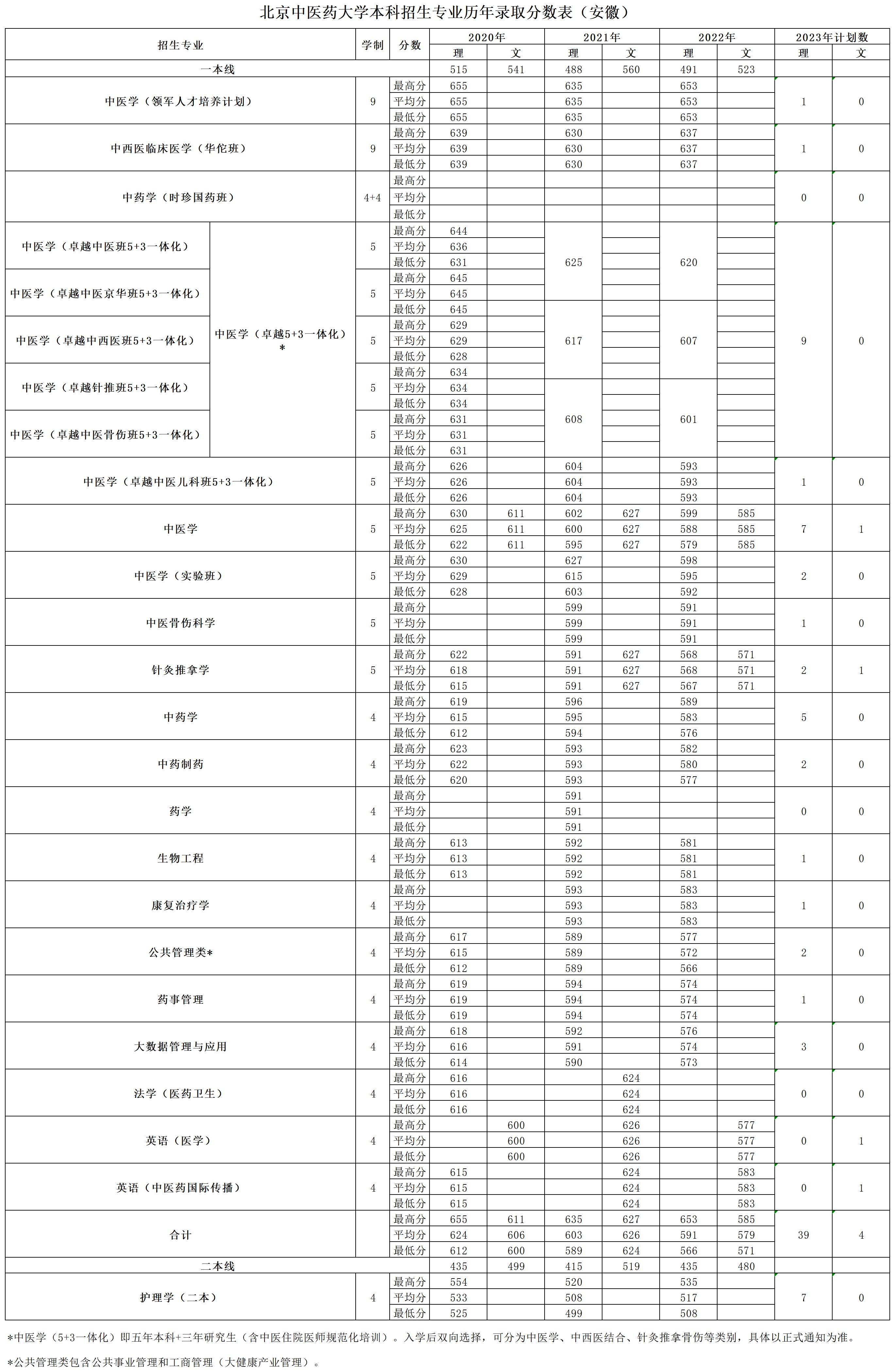 安徽2023年招生计划及历年录取分数