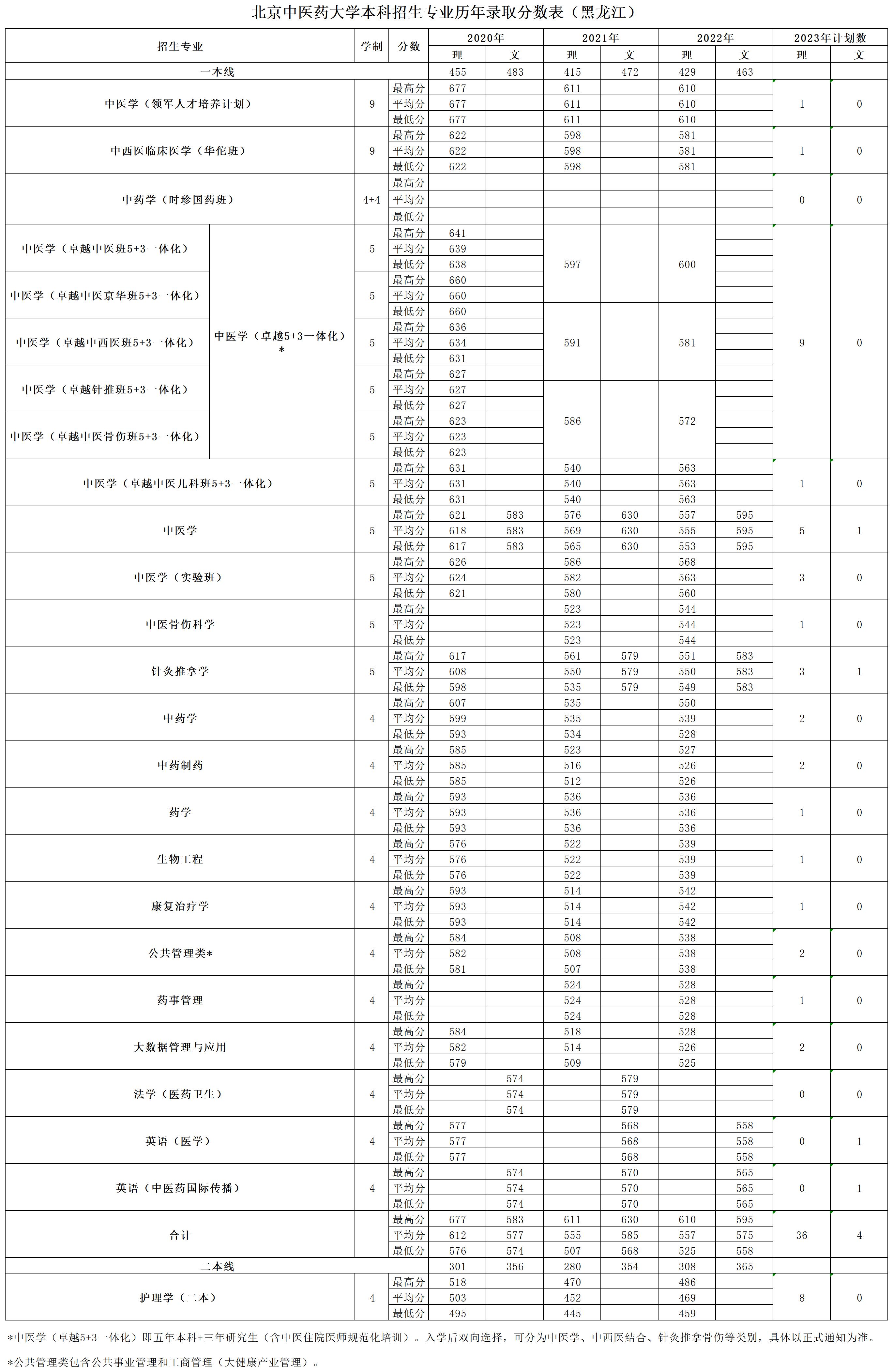 黑龙江2023年招生计划及历年录取分数