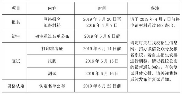 1.初审:我校将根据考生报名材料进行初审。请于2019年5月8日后登录报名系统和我校招生信息网查看初审结果。未通过初审的考生,我校不再另行通知。