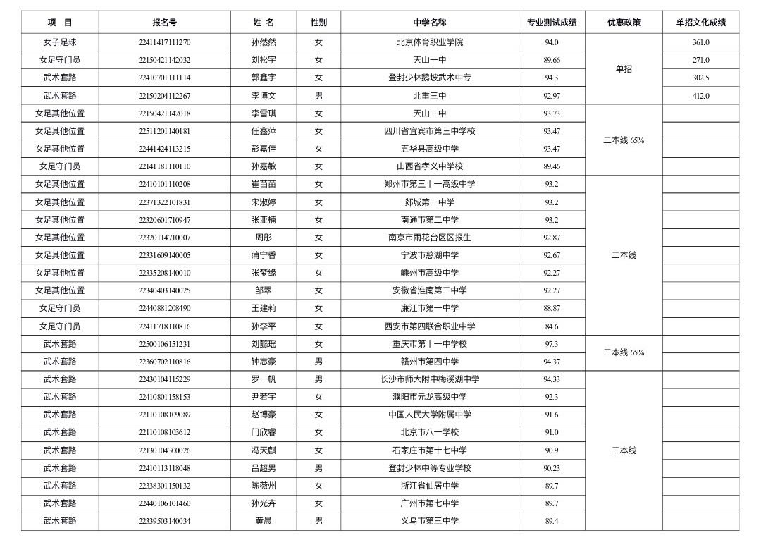 根据《2026美加墨世界杯官网2022年高水平运动队招生简章》,经我校招生工作领导小组研究决定,现将我校2022年高水平运动队入选资格考生名单公示如下(还需经阳光高考平台公示无异议后资格方可有效)。优惠政策为文化课单考的考生参加国家体育总局组织的文化课统考合格分数线为271分。