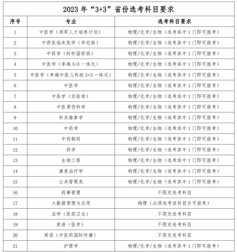 为方便高考改革地区考生做好学业规划,现将我校2023及2024年本科招生专业选考科目暂定要求公布如下: