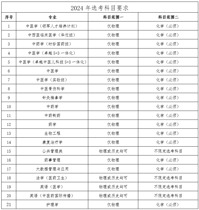为方便高考改革地区考生做好学业规划,现将我校2024年本科招生专业选考科目暂定要求公布如下: