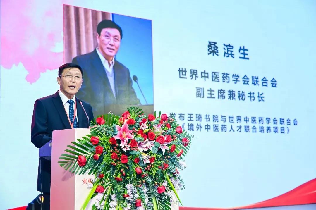 世界中医药学会联合会秘书长桑滨生发布《境外中医药人才联合培养项目》。世界中医药学会联合会与王琦书院联合举办首届海外班,对促进中医药境外发展,提升境外中医药从业人员学术水平,共建人类卫生健康命运共同体具有重要意义。
