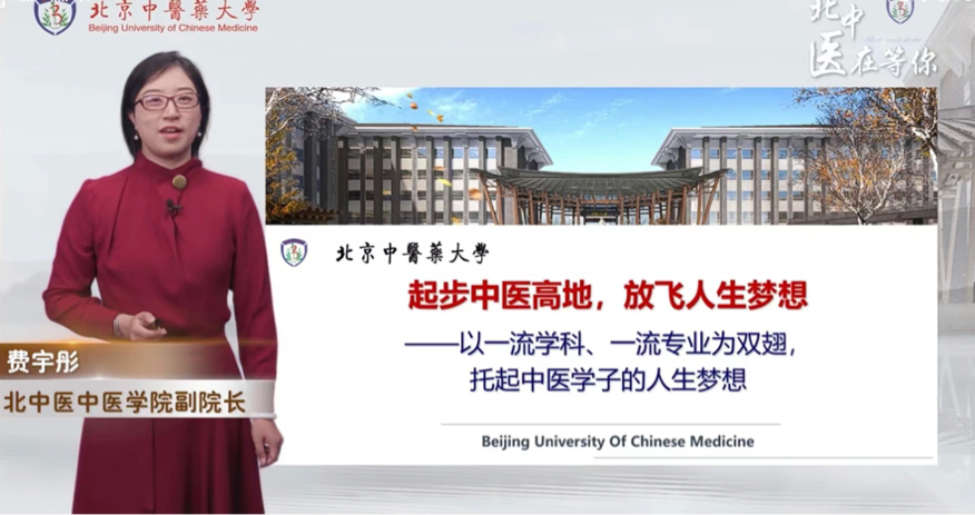 2022年5月21日19:00-19;30,北中医中医学院副院长费宇彤老师通过招生办打造的《专业大咖帮你选专业》直播栏目,深入浅出地向我们介绍了中医学相关专业情况,直播好评如潮。