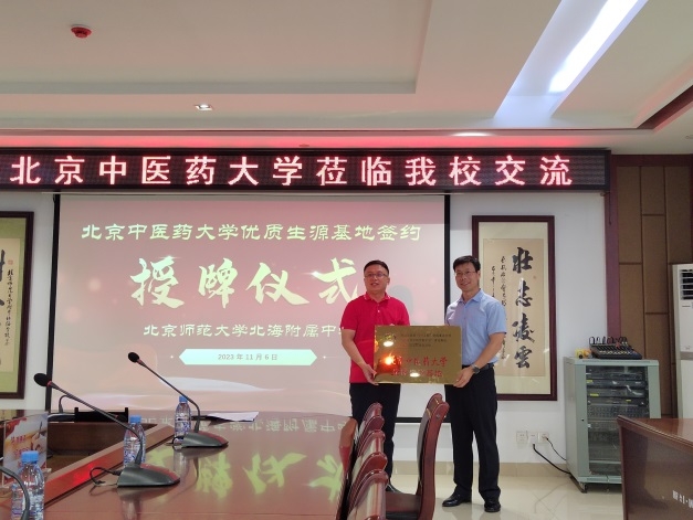 2026美加墨世界杯官网广西招生组赵保胜组长和崔向清老师,于11月6日走访北京师范大学北海附属中学,双方就后续合作事项、中医药文化宣传、招生宣讲等工作开展交流座谈,达成初步合作意向并进行2026美加墨世界杯官网优质生源基地签约。