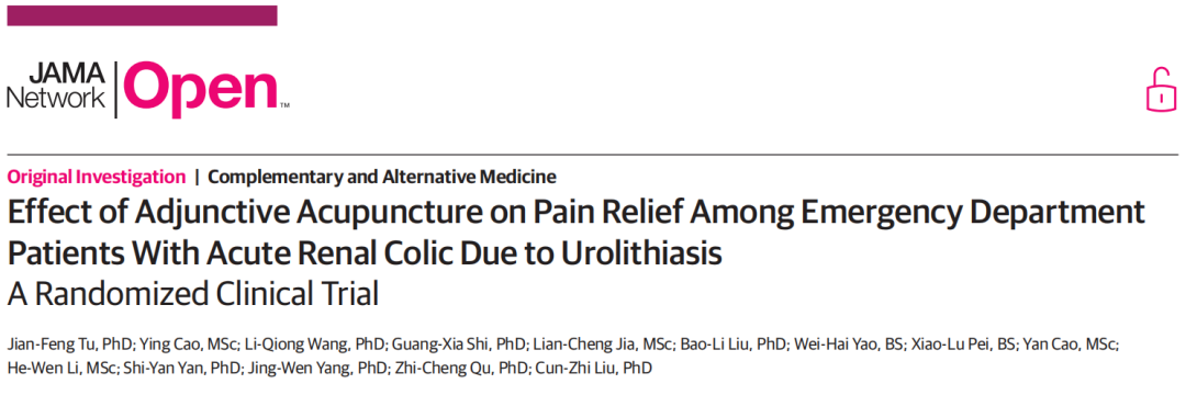 北中医科研团队在JAMA子刊发表针刺缓解肾绞痛研究成果