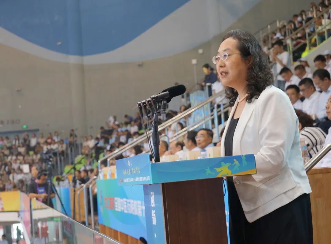 王瑶琪书记在开幕式上代表全体参赛院校领导致辞。她表示,本届传运会的举办将为广大青年学子点燃运动激情、播撒体育火种、传承文化精华,促进全民健身活动的广泛开展,同时带动体育健康产业和中医药事业的高质量发展。她希望各参赛队伍要珍惜此次参赛机会,发扬顽强拼搏、团结互助的精神,在比赛中赛出风格、赛出水平、赛出友谊。希望各兄弟院校加强沟通,促进合作交流,携手共创中医药事业更加美好的明天。