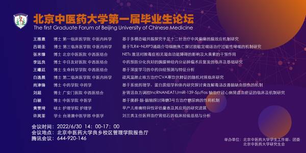经过前期评审筛选,来自11个学院和临床教学医院的11位毕业生入围本次论坛,对自己在学期间的研究成果作了汇报,报告内容涵盖中医临床、基础医学、中药学和护理学等各学科领域。