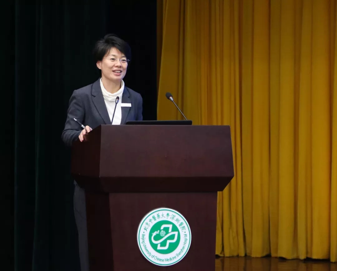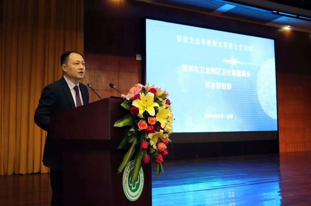 深圳市龙岗区卫计局副局长许亦群向参会人员介绍了深圳龙岗的中医医疗机构建设情况与中医药健康服务体系现状,并欢迎我校优秀博士生落地龙岗,为龙岗乃至深圳的中医药事业发展增添力量。