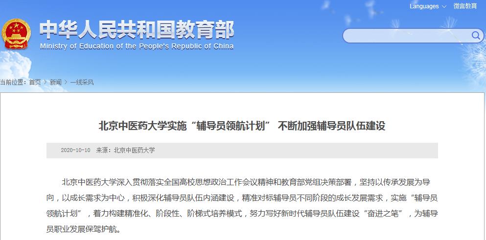 教育部网站报道我校实施“辅导员领航计划” 不断加强辅导员队伍建设
