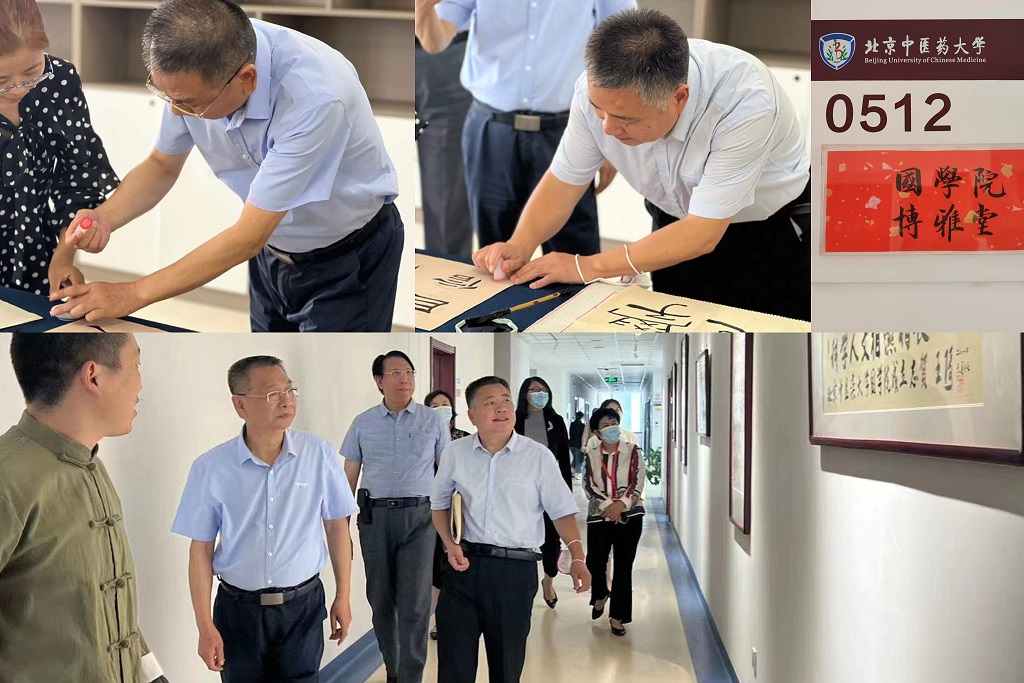 揭牌仪式结束后,与会领导前往国学院五层的美育中心参观指导。美育中心此次投入使用的为一期项目,分为博雅堂琴棋文化实训室、静心斋书画艺术实训室、艺术展廊等部分,使用面积达300平方米。