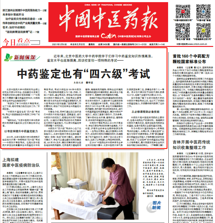 中药饮片是中医临床用药的主要形式,也是中成药生产的原材料。准确辨识中药饮片真伪优劣,是保证临床用药安全的基础,也是中医药从业者的基本技能。为了提高同学们的中药鉴定能力,我校首创了衡量中药鉴定水平的等级考试。5月6日,《中国中医药报》头版头条对这一创新举措进行报道。全文如下: