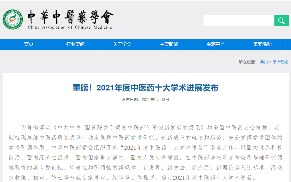 喜讯:我校两项学术成果入选2021年度中医药十大学术进展!