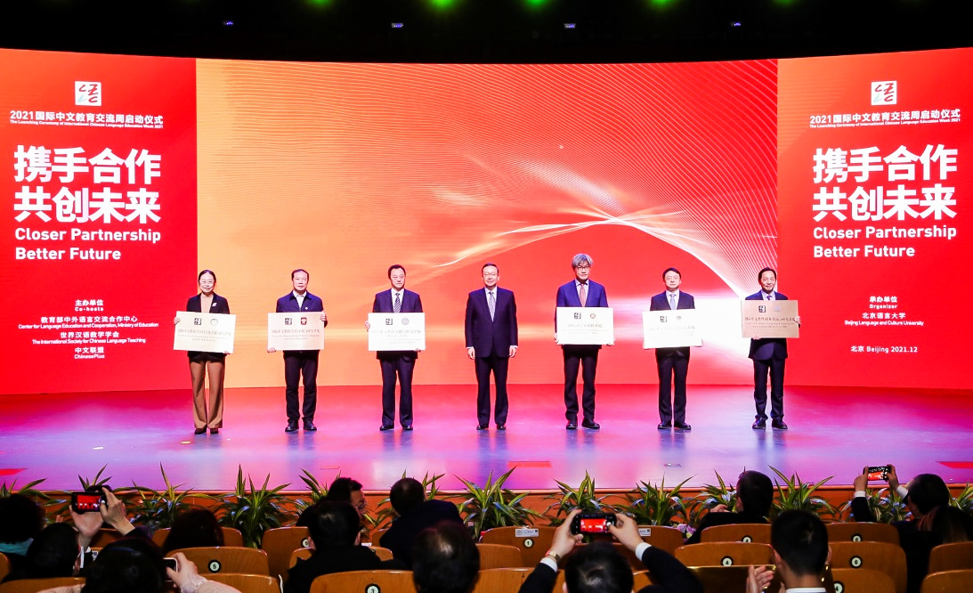 12月13日上午,由教育部中外语言交流合作中心、世界汉语教学学会、中文联盟联合主办的“携手合作、共创未来——2021国际中文教育交流周”活动正式启动。教育部副部长田学军、我校党委书记谷晓红、校长助理张立平、国家中医国际传播中心主任张丹英出席了启动仪式。谷晓红书记代表学校接受了教育部为我校颁发的国际中文教育(中医药文化)实践与研究基地铭牌。