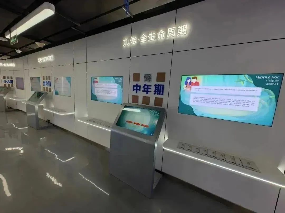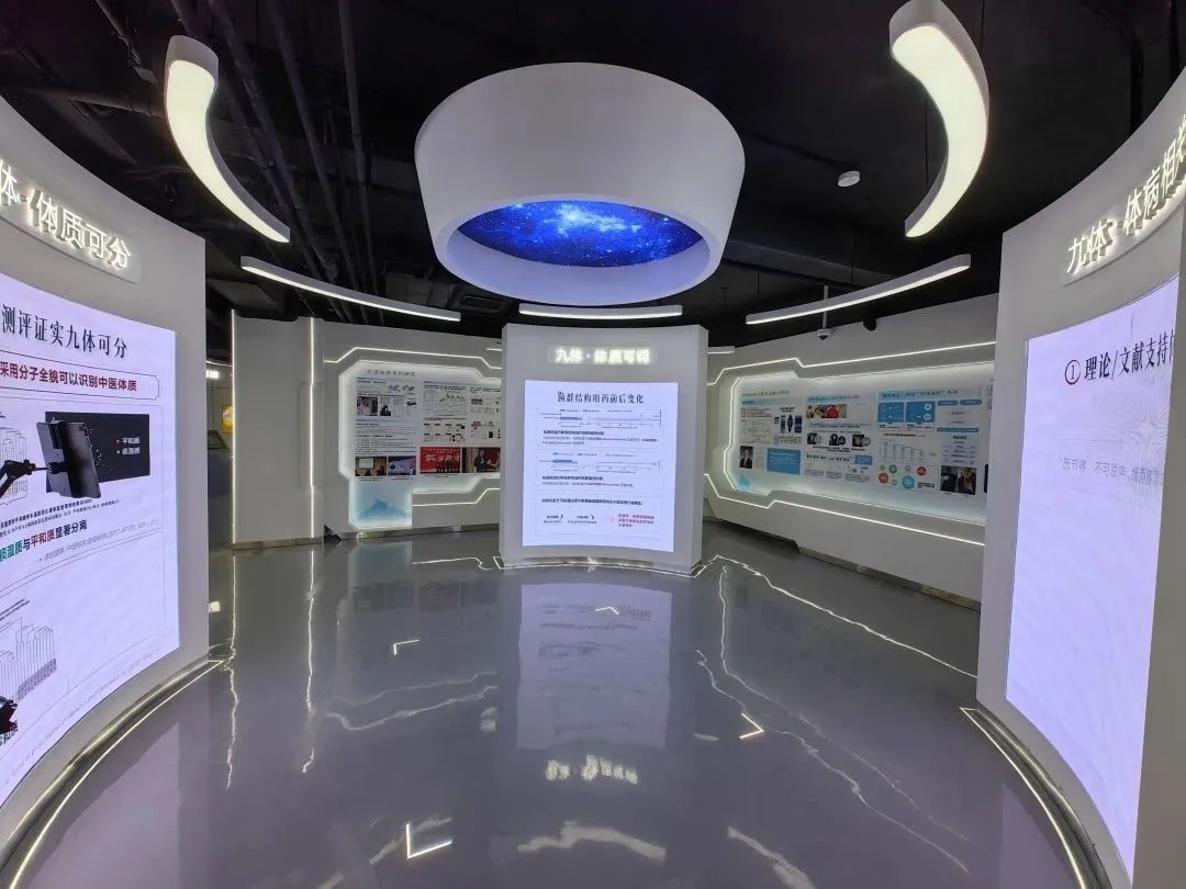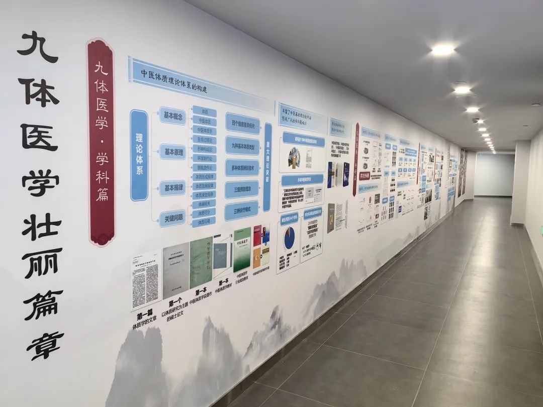 九体医学展馆分为引言、古今中外比较、大事记、三大科学发现、全生命周期健康维护、健康中国、国际共享等7个板块,全面介绍了中医体质学从研究人的“病”到研究病的“人”的思维模式转变、中国人九种体质的发现、调节体质防控慢病和全生命周期健康维护的研究成果,以及研究成果在国家基本公共卫生服务和慢病防控中的转化应用和国际影响,并勾画了“九体医学健康中国计划”的宏伟蓝图。