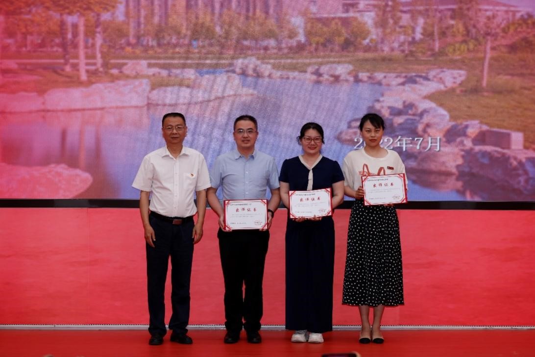 来自中医学院的出师学员代表王景霞教授以《勇于担当,在干中教、在干中学》为主题,分享在高学敏教授名师坊的育人故事。高教授注重本行业的现场调研,曾带领学员在药材市场辨认药材、参观药企,令她深切地感受到知识是如何转换成生产力,为民众谋健康的。在高教授带领下,她参与中医疫病本草指南编写工作,增强了对中医药抗疫的自信。高教授尽职尽责、爱岗敬业的师风师德也深深地影响着她。第二位分享者是张冰教学名师工作坊的林志建老师,他结合自身体验对“名师工作坊教师导师制”进行了解读。他深感规范的制度和相应考核的约束让老中青传帮代更顺畅、更有效,有利于领会前辈的经验和师风师德,从而提高教学能力。在与不同背景的坊员交流学习中,加强了知识的流通和新思想的激发。第三位分享者是来自人文学院吴青教学名师工作坊的王珊珊老师。她以《“出师”表》为主题,分享了她重新回归学生身份在名师坊跟随吴教授学习的经历和故事。名师坊给了她平台,名师给了她指导,三年的成长让她收获颇丰,更让她对专业课程和课程思政有了不同的理解和感悟。翟双庆副校长为三位分享故事的出师学员代表颁发了出师证书。