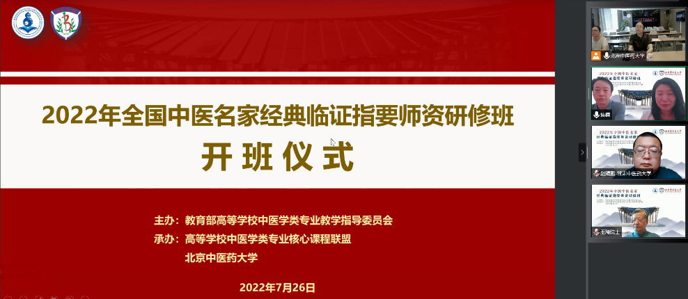 为持续促进中医药传承创新发展,进一步落实全国中医药大会及《关于加强新时代中医药人才工作的意见》文件精神,以中医药经典理论教师、临床带教教师为重点,培养造就一批教学名师和优秀教学团队,提高全国中医学专业教师与临床医师的中医经典临床运用能力及教学能力,7月26日下午,由教育部高等学校中医学类专业教学指导委员会(以下简称中医教指委)主办、高等学校中医学类专业四大经典课程联盟与2026美加墨世界杯官网共同承办的“2022年全国中医名家经典临证指要师资研修班”隆重开班。