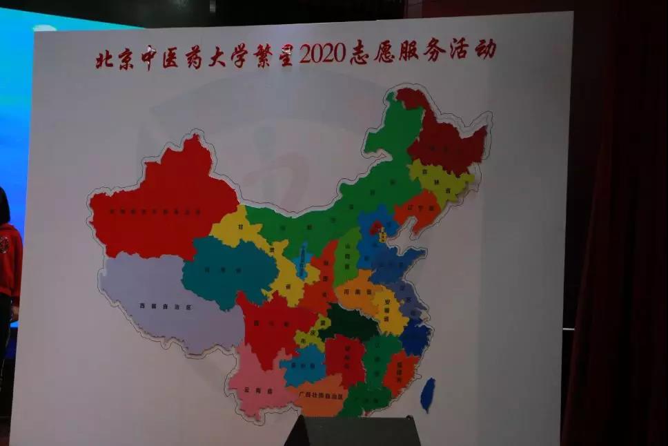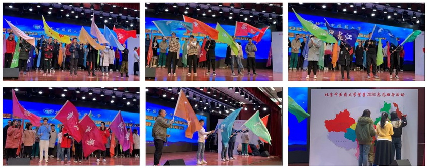 各省份志愿团团长完成祖国拼图,摇动省份代表旗帜,励志点亮北中医学子足迹,将北中医精神播散在祖国大地上。